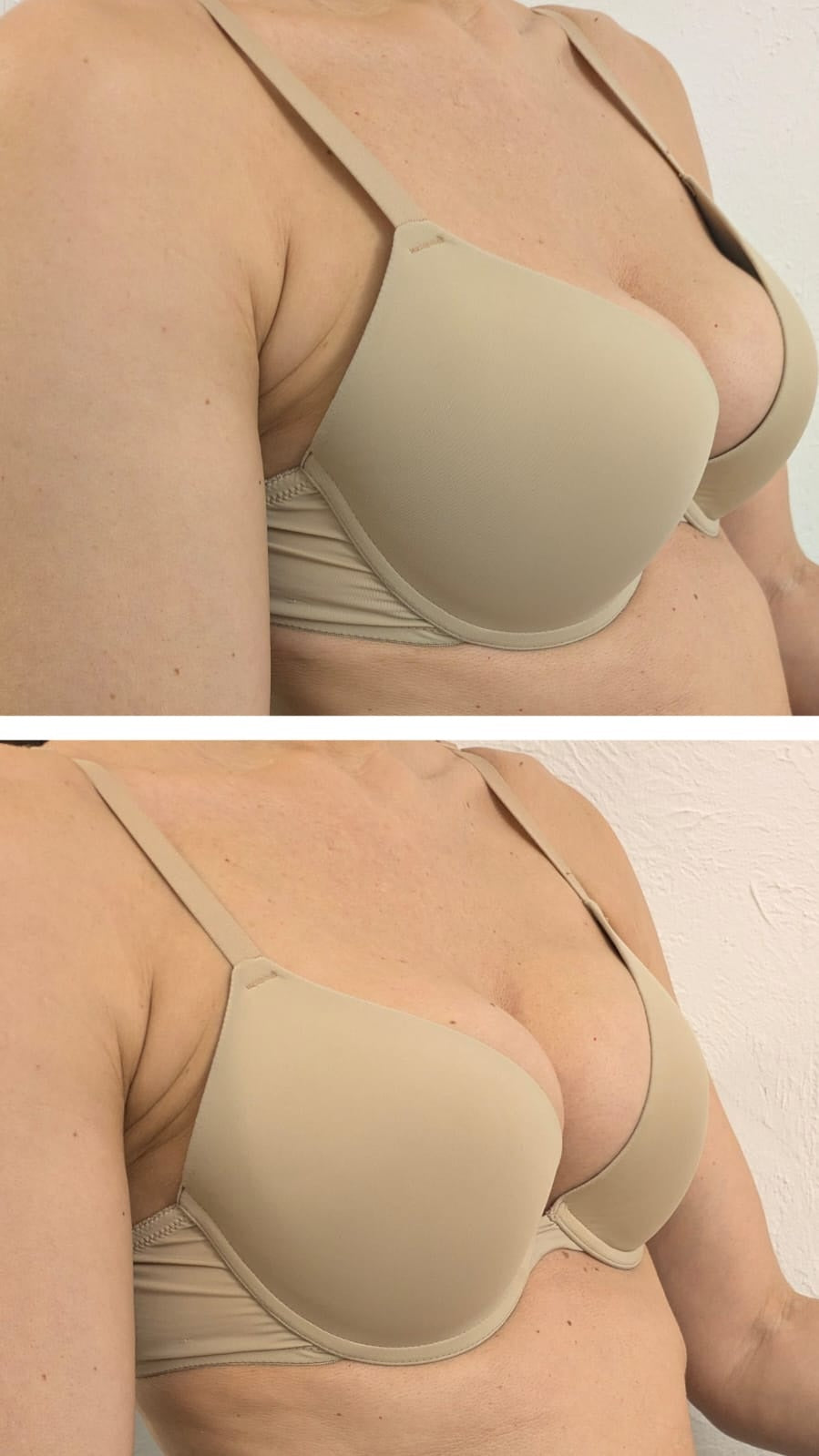 ▶ Reafirmas y tonificas hasta un 75 % más. Una piel del seno mucho más reforzada y más firme. Notarás tu pecho más duro y redondeado.